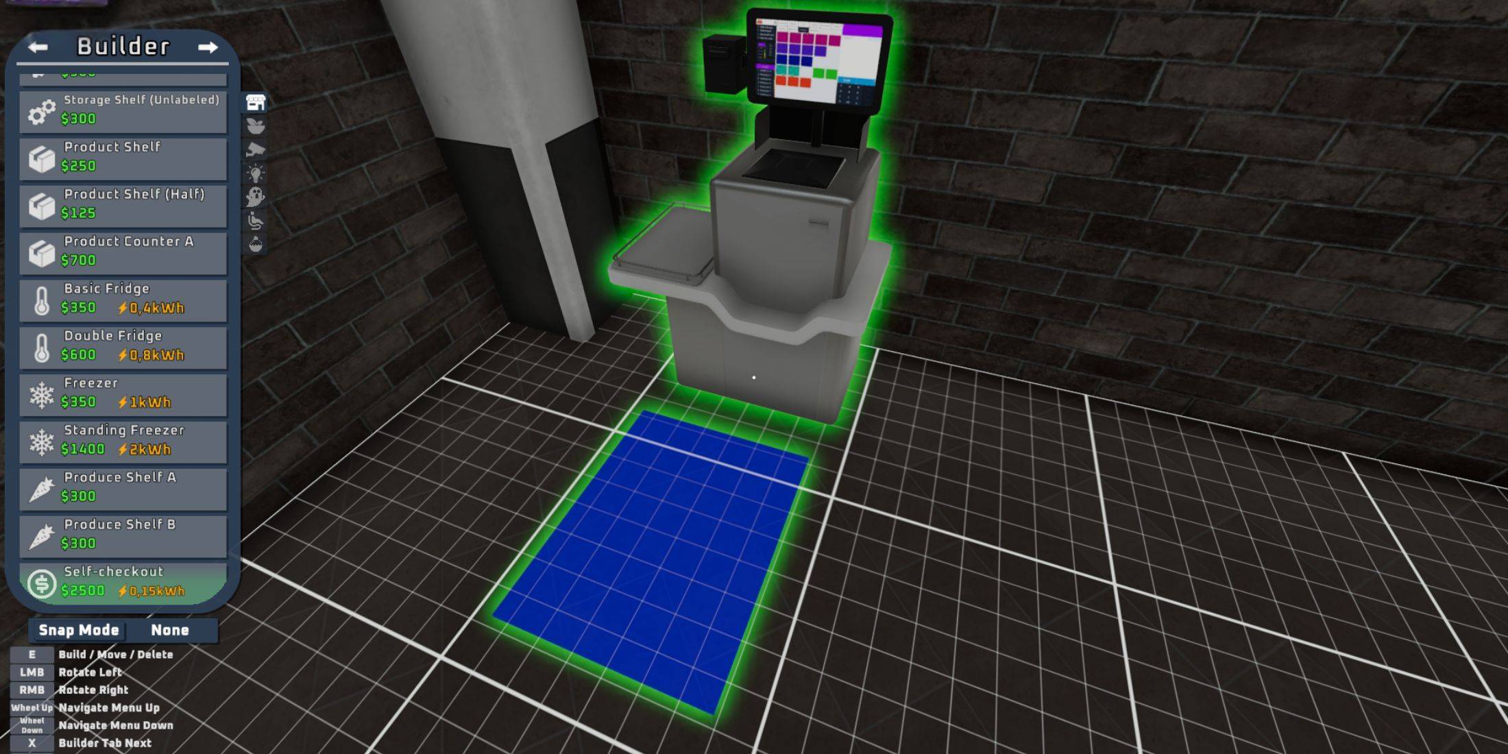 Construir um auto-checkout é fácil. Abra o menu do construtor (pressione a guia) e role para encontrar o terminal de auto-checkout. Custa US $ 2.500-um investimento gerenciável, dadas as várias oportunidades de ganhar dinheiro no jogo.